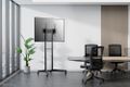 Der Trolley ist mit vier stabilen Rollen - zwei davon mit Feststellern - ausgestattet, so dass der Bodenständer überall einsetzbar ist. Ein cleveres Kabelmanagementsystem verbirgt und führt Kabel von der Halterung zum Flachbildschirm.