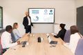 - Integriertes Whiteboard – das Haupt-Menü des Empfängers hält eine Whiteboard-Funktion bereit und ermöglicht in Kombination mit einem Touchscreen, schnelle Notizen während des Meetings, der Präsentation direkt am Display