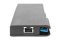 Mit der Universal Travel Docking Station, USB 3.0 von DIGITUS® haben Sie die wichtigsten Schnittstellen immer dabei. Die Docking station erweitert Ihr Notebook um sieben weitere Ports. Sie bietet zwei Video-Schnittstellen (HDMI und VGA). Die höchtsmögliche unterstützte Auflösung (HDMI): 2560 x 1140@50Hz. Dazu bietet sie zwei USB 3.0 Anschlüsse. Über den Gigabit Ethernet Anschluss lässt sich Ihr Notebook auch per Kabel ins Netzwerk einbinden. Abgerundet wird das Ganze durch einen anbehmbaren Kartenleser mit 2 Slots für MicroSD, SD Karten. Durch die kompakte Größe, das geringe Gewicht sowie das verstaubare Anschlusskabelpasst die Docking Station in jede Tasche und ist somit der perfekte Begleiter für unterwegs und auf Reisen.