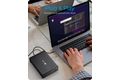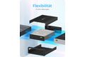Das Gehäuse ist aus hochwertigem Aluminium gefertigt und ist somit robust und besonders langlebig. Das schlichte, schwarze Design integriert sich gut in die IT-Peripherie der meisten Arbeitsplätze.