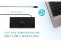 Die Station ist mit jedem Notebook kompatibel, der mit einem USB-C-Port (mit Unterstützung der Videoübertragung) oder Thunderbolt-3-Port ausgestattet ist. 6x USB-Port, zuverlässige und schnelle Verbindung mit dem Firmennetz dank dem integrierten LAN-Port, dies alles macht aus der Dockingstation einen idealen Begleiter für echte Profis. Die Stromversorgung Ihres Notebooks oder Tablets bis zu 85 W gehört natürlich dazu.