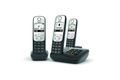 Gigaset A690A Trio. Typ: Analoges/DECT-Telefon, Hörertyp: Kabelloses Mobilteil. Freisprecheinrichtung, Telefonbuch Kapazität: 100 Eintragungen. Anrufer-Identifikation. Bildschirmdiagonale: 5,08 cm (2"). Produktfarbe: Schwarz. Anzahl enthaltener Handsets: 3