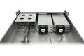 So bietet das 2U-2504 die Möglichkeit ein ATX Netzteil mit 80mm Lüfter zu verbauen, sowie bis zu vier 2,5“/3,5“ Hot Plug Festplatten, zwei 2,5“ und ein externes 5,25“ Laufwerk. Mainboards können bis zur μATX-Größe eingebaut werden. Zusätzlich ist das Gehäuse serienmäßig mit zwei 60mm Lüftern und gelochten Slotblechen ausgestattet.