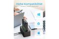 Der schnelle Datentransfer vom Computer auf eine Festplatte oder umgekehrt gelingt mit bis zu 5 Gbit/s über die USB 3.2 Gen 1 Schnittstelle. Das verkürzt Wartezeiten für Lese- und Schreibvorgänge. Die DockingStation wird über einen USB Type-A Stecker mit dem Hostrechner verbunden.
