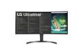 LG 35WN75CP-B.AEU. Bildschirmdiagonale: 88,9 cm (35"), Display-Auflösung: 3440 x 1440 Pixel, HD-Typ: 4K Ultra HD, Bildschirmtechnologie: LED, Display-Oberfläche: Matt, Reaktionszeit: 5 ms, Natives Seitenverhältnis: 21:9, Bildwinkel, horizontal: 178°, Bildwinkel, vertikal: 178°. Eingebaute Lautsprecher. Integrierter USB-Hub, USB-Hub-Version: 3.2 Gen 1 (3.1 Gen 1). VESA-Halterung, Höhenverstellung. Produktfarbe: Schwarz