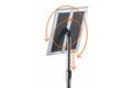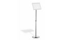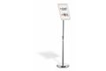 Schnell aufgebauter Infoständer mit robustem DIN A4 Aluminium-Klapprahmen, silber eloxiert Hohe Stabilität kann durch optionale Befüllung des Standfußes (Durchmesser: 250 mm) mit Sand sichergestellt werden. Zukaufartikel DURABLE Sand Art. Nr. 3335-16, max. Gewicht von ca. 1,1 kg Runder Standfuß mit Gummiring verhindert Kratzer auf dem Boden Höhenverstellbar durch Teleskopstange (von 770 mm stufenweise verstellbar bis zu einer Höhe von max. 1.205 mm im Hochformat) Klapprahmen ist einfach drehbar vom Hoch- ins Querformat Lesewinkel durch Kugelgelenk verstellbar Reflexionsarme, UV-beständige Schutzfolie Schlagfeste Rückwand aus Polystyrol Ecken auf Gehrung geschnitten Ideal für die Gastronomie, den Einzelhandel, Museen, Ausstellungen, Messehallen, Empfangs- und Wartebereiche, Konferenzräume etc.