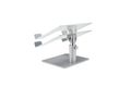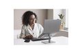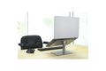 Der Universelle Laptopständer ermöglicht es Ihnen, Ihren Laptop auf eine bequeme Betrachtungshöhe aufzustellen und gleichzeitig die Unordnung auf dem Schreibtisch zu verringern. Diese stabile Laptophalterung für den Tisch aus robustem Stahl und Aluminium eignet sich für Laptops aller Größen bis maximal 16 und maximal 8 kg. Das stufenlose Design erfordert kein Werkzeug, um die Höhe zwischen 151 und 200 mm einzustellen oder den Winkel von 0° bis 45° zu neigen. Die offene Belüftung verbessert die Luftzirkulation und die Kühlung des Laptops, während Sie darunter reichlich Stauraum für Zubehör vorfinden. Rutschfeste Silikonpads verhindern Kratzer auf dem Laptop und helfen, das Gerät an seinem Platz zu halten.