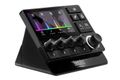 4 Encoder für die Lautstärkeregelung (mit Stummschaltung), 2 Seiten mit je 4 Titeln + Taste für die Seitenverwaltung, Encoder für die Lautstärke des Headsets, Mute All-Taste, Audiokontrolle anderer Geräte (Spielkonsole, zweiter Computer...), 1 Headset-Ausgang, 1 XLR-Mikrofoneingang, 1 optischer Anschluss, 1 Line-in-Anschluss, 1 Line-out-Anschluss