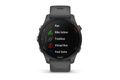 Garmin Forerunner 255. Bildschirmdiagonale: 3,3 cm (1.3"), Bildschirmtechnologie: MIP, Display-Auflösung: 260 x 260 Pixel. Flash-Speicher: 4 GB. WLAN. GPS. Gewicht: 49 g. Bandmaterial: Silikon, Armbandfarbe: Grau, Bandgröße: Universalgröße