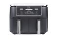 Ninja AF400EU. Produkttyp: Heißluftfritteuse, Fassungsvermögen: 9,5 l. Bauart: Doppel, Produktfarbe: Schwarz, Steuerung: Drehregler, Berührung. Leistung: 2470 W. Breite: 415 mm, Tiefe: 270 mm, Höhe: 325 mm. Verpackungsbreite: 500 mm, Verpackungstiefe: 410 mm, Verpackungshöhe: 388 mm