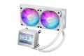 Mit der Ryujin III White Edition bist du noch cooler als cool. Sein makelloser Rahmen beherbergt einen großen 3,5-Zoll-LCD-Bildschirm, auf dem Live-Statistiken, animierte GIFs oder sogar dein eigenes Kunstwerk angezeigt werden. Darunter sorgt eine neue Asetek-Pumpe der 8. Generation für die Kühlung der neuesten Prozessoren von Intel® und AMD, während ein eingebauter Axial-Tech-Lüfter hilft, die VRM-Temperaturen des Mainboards zu kontrollieren. Die Kühlflüssigkeit im Inneren fließt durch 400 mm verstärkte Rohre und einen Radiator mit höherer Kapazität, der von zwei magnetischen ROG 120 mm ARGB-Lüftern gekühlt wird, was die Installation und Anpassung zum Kinderspiel macht.