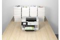 Dieses kompakte 3-in-1-Multifunktionssystem mit von vorn zugänglichem ADF ist so konzipiert, dass es auch bei begrenztem Platzangebot eine hervorragende Produktivität bietet. Die nachfüllbaren Tintentanks sorgen für eine hohe Seitenreichweite bei niedrigen Betriebskosten.