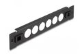 Dieses Patchpanel von Delock kann zum Einbau in einen 10″ Geräteschrank verwendet werden. Durch die standardisierten Abmessungen ist es zur einfachen Montage von 6 D-Typ Modulen geeignet.