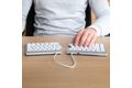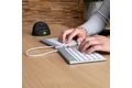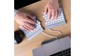 Die R-Go Split Break Tastatur ist eine ergonomische geteilte Tastatur mit integrierter Pausensoftware. Diese Tastatur erinnern Sie daran, regelmäßig Pausen einzulegen. Kurze Pausen fördern den Blutkreislauf, beugen Überbelastungsbeschwerden vor und halten Sie bei der Arbeit fit. Die Tastatur besteht aus zwei separaten Teilen, die Sie nach Belieben aufstellen können. Diese Spaltung verhindert ein Knicken der Handgelenke beim Tippen. Denn Tippen mit geraden Handgelenken verringert die Muskelspannung und verhindert das Einklemmen von Sehnen und Blutgefäßen. Ein eingebauter Magnet ermöglicht es Ihnen, die beiden separaten Teile der Tastatur in einer Bewegung in eine kompakte Tastatur zurück zu verwandeln. Die kompakte Größe sorgt dafür, dass die Maus immer in Reichweite ist. Durch den leichten Tastenanschlag ist die Muskelspannung beim Tippen minimal. Die Tastatur ist flach, sodass Ihre Hände und Handgelenke beim Tippen flach und entspannt bleiben. Die LED-Farbsignale in der Tastatur zeigen an, wie gesund Sie arbeiten und wann es Zeit für eine Pause ist. Während Sie tippen, wechselt die LED die Farbe, wie eine Ampel. Grün bedeutet, dass Sie auf gesunde Weise arbeiten, Orange, dass es Zeit für eine Pause ist, und Rot, dass Sie zu lange gearbeitet haben. Mittels dieser subtilen Farbsignale erhalten Sie auf einfache und positive Weise ein Feedback zu Ihrem Pausenverhalten. Dieses Produkt funktioniert in Kombination mit der R-Go Break Software, die mit dem Benelux Office Product Award 2021 gekürt wurde. Laden Sie den kostenlosen Break LED-Steuerung hier herunter.