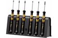 Elektrostatisch abgesicherter Wera Micro Schraubendrehersatz. Sicherer Schutz vor elektrostatischer Energie und damit verbundenen Schäden. Durch Abstützen der Hand auf der Drehkappe und durch die Schnelldrehzone unterhalb der Drehkappe ist blitzschnelles Zwirbeln möglich. Zeitintensives Umgreifen entfällt. Kraftzone mit integrierten Weichzonen sorgt für die Übertragung hoher Löse- und Anzugsmomente. Präzisionszone für den richtigen Drehwinkel bei Justierarbeiten. Die Wera Black Point-Spitze bietet Passgenauigkeit und optimierten Korrosionsschutz.