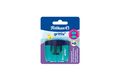Pelikan griffix Doppeldosenanspitzer mit speziellem Lochverschluss, der den Span sicher im Container hält. Für holzgefasste Stifte Standard und dick. Qualitätsmesser "Made in Germany" für langanhaltend präzise Anspitzergebnisse. Stabil stehender, transparenter Container mit einfachem Clickverschluss zum Entleeren. 1 Stück in blau auf Blisterkarte. Blisterkarte aus FSC Material, Blisterhaube aus Recyclingfolie.