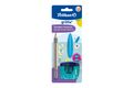 Pelikan griffix Starter-Schreibset, bestehend aus ergonomischem Radierer, Doppeldosenanspitzer und holzgefasstem Schreiblernbleistift, Grad B auf Blisterkarte. Blisterkarte aus FSC Material, Blisterhaube aus Recyclingfolie.