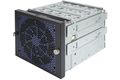 In jeden Festplattenkäfig lassen sich bis zu fünf 3,5" Festplatten schraub- und werkzeuglos einbauen. Zur Kühlung der Festplatten ist in jedem Festplattenkäfig ein 120mm Lüfter eingebaut, der sich bei Bedarf von außen, ohne das Gehäuse öffnen zu müssen, austauschen lässt.
