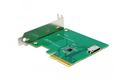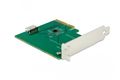 Diese PCI Express Karte von Delock erweitert den PC um einen SFF-8612 Anschluss. An diesen Port kann z. B. eine SSD, mit Hilfe eines optionalen Kabels, angeschlossen werden. Die Karte überträgt PCI Express Signale und verwendet dazu das NVMe Protokoll.