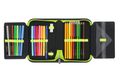 Für Schule; Etui mit 31 Teile, 2 Klappen; mit farbigem Reißverschluss; Schlaufen in unterschiedlichen Größen; guter Überblick, farbiges Innenmaterial farbig passend zum Motiv; farbige Stifteschlaufen; Maße: 20,5 x 14 x 3,8 cm; Material: Polyester; Befüllung: mit FSC zertifizierten Bunt- und Bleistiften, Fasermaler.