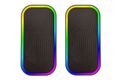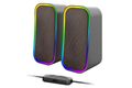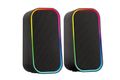 Gaming-Sound in voller Pracht – der Speedlink TOKEN RGB Gaming Stereo Speaker präsentiert eine beeindruckende Kombination aus kraftvollem Klang und stimmungsvoller RGB Beleuchtung, die das Gaming-Erlebnis auf ein neues Niveau hebt. Die sechs verschiedenen Beleuchtungsmodi, inklusive einer reaktiven Musikbeleuchtung, ermöglichen eine individuelle Gestaltung der Gaming-Umgebung nach persönlichen Vorlieben. Dank der Bluetooth® Verbindung lassen sich Smartphones, Tablets oder andere Geräte mühelos koppeln. Die integrierte Kabelfernbedienung bietet eine bequeme Lautstärkesteuerung sowie einen praktischen Ein- / Ausschalter über den die Verbindung via Klinkenstecker oder Bluetooth® ausgewählt wird. Die großzügige Kabellänge von 1,2 Meter plus 1,2 Meter zwischen den Satelliten schafft ausreichend Flexibilität für die optimale Positionierung im Setup.