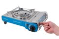 Das neue DLX Modell der renommierten Camp'Bistro Campingkocher Serie verfügt über einen überarbeiteten Topfträger, welcher in der Handhabung noch einfacher und komfortabler als der des Vorgängermodelles ist. Zum einfachen Transport und zur sicheren Lagerung wird der Einflamm-Gaskocher in einem Kunststoffkoffer geliefert. Die Hauptmerkmale im Überblick: Höchste Qualität von Campingaz. Einfach zu reinigender und langlebiger Edelstahl. Kartuschen "Safety-Lock" System zur sicheren Handhabung. Leistung/Flammengröße fein regulierbar. Piezo Zündung zum einfachen Zünden ohne Streichholz.