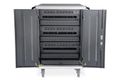 Der mobile Ladeschrank von DIGITUS® ist die ideale und kompakte Lösung zur Aufbewahrung und zum Aufladen Ihrer portablen Geräte, wie z. B. Notebooks und Tablets. Häufig werden mobile Ladeschränke in öffentlichen Einrichtungen wie z. B. Schulen genutzt, um die Geräte an einem zentralen Ort gesichert aufzubewahren und gleichzeitig laden zu können. Der Schrank beinhaltet 3 Reihen mit jeweils 10 Ladeplätzen, von dem jeder über einen eigenen USB-Anschluss an der Vorderseite verfügt. Zusätzlich können die Geräte rückseitig mit verbauten Steckdosenleisten (3 x 10-fach Schutzkontakt) verbunden werden. Dank der großzügigen Kabeldurchführungen und Überlängenablagen ist ein optimales Kabelmanagement garantiert. Verbaute Lüfter (3 x 24 V) in Verbindung mit Lüftungsschlitzen sorgen für eine aktive Entwärmung des Schrankes.