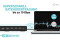 - 7 USB-Anschlüsse: 2x USB-C (10 Gbit/s) mit Unterstützung für BC 1.2 Schnellladung und 5x USB-A (1x Gen 2 (10 Gbit/s) mit Unterstützung für BC 1.2 Schnellladung, 2x Gen 1 (5 Gbit/s) mit Unterstützung für BC 1.2 Schnellladung und 2x USB 2.0)