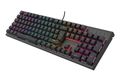 GENESIS NKG-2179. Tastatur Formfaktor: Volle Größe (100%). Tastatur-Stil: Gerade. Übertragungstechnik: Kabelgebunden, Geräteschnittstelle: USB, Tastatur-Switch: Mechanischer Switch, Tastaturaufbau: QWERTZ, Tastatur - Tastenanzahl: 105. Typ der Hintergrundbeleuchtung: RGB-LED. Kabellänge: 1,8 m. Empfohlene Nutzung: Gaming. Produktfarbe: Schwarz