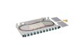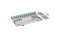 Komplett bestückte Spleißbox mit Kupplungen und durchgefärbten Pigtails. Metallgehäuse tiefenverstellbar