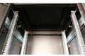 Wir stellen die Schränke "Dynamic Flex Line" vor: Diese Schränke wurden für die benutzerfreundliche Installation von aktiven und passiven Netzwerkkomponenten entwickelt und legen den Schwerpunkt auf ein effizientes Kabelmanagement. Gefertigt aus bis zu 1,5 mm dicken Stahlblechen bieten die Schränke dank einer einzigartigen Fertigungstechnik der Bleche eine außergewöhnliche Stabilität. Sie sind mit einer eleganten Pulverbeschichtung in Grau (RAL 7035) oder Schwarz (RAL 9005) versehen. Wenn der Aufstellungsort schwer zugänglich ist, kann der Schrank leicht demontiert werden. Die Türen sind so konstruiert, dass sie leicht entfernt werden können, wobei die Ausrichtung des Türanschlags flexibel von rechts nach links geändert werden kann. Das Dach des Schrankes verfügt über einen zusätzlichen Deckel mit Lüftungsschlitzen für eine bessere Luftzirkulation. Dieser ist außerdem für den Einbau eines Lüftungsgerätes vorbereitet. Im Inneren des Schrankes befinden sich zwei Sätze (4 Stück) 483-mm-Profilschienen (19"), die verzinkt und mit einer aus beiden Richtungen lesbaren Höheneinheitsmarkierung versehen sind. Diese Schienen sind in der Tiefe verstellbar und werden mit zusätzlichen Tiefenabstützungen geliefert, die eine vollständige 483 mm (19") Geräteinstallation gewährleisten. Ein Highlight des Designs ist die Betonung der Kabelführung. Der Schrankboden ist mit einer gummigedichteten, verschiebbaren Kabeleinführung ausgestattet. Schränke ab 26 HE verfügen über zwei Kabeleinführungen mit Bürstenleiste an der Rückseite, sowohl oberhalb als auch unterhalb der Rückwandtür. Die 800 mm breiten Schränke bieten erweiterte Kabelmanagementmöglichkeiten, einschließlich zusätzlicher Kabeleinführungen mit Bürstenleisten an der Ober- und Unterseite. Darüber hinaus verfügen diese breiteren Schränke über vertikale Kabelkanäle mit Klappen an beiden Seiten, die an die 483 mm (19") Profilschienen an der Vorderseite angrenzen. Um den unterschiedlichen betrieblichen Anforderungen gerecht zu werden, steht eine breite Palette an Zubehör zur Verfügung, darunter Fachböden und Kabelmanagement-Werkzeuge, die die Anpassungsfähigkeit im täglichen Einsatz gewährleisten.