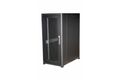 Die Schränke der Basic Flex Line wurden für die effiziente und benutzerfreundliche Installation von aktiven und passiven Netzwerkkomponenten entwickelt, wobei der Schwerpunkt auf einem rationellen Kabelmanagement liegt. Hergestellt aus bis zu 1,5 mm starkem Stahlblech, garantiert jeder Schrank eine hervorragende Stabilität durch eine einzigartige, die einen robusten Stahlrahmen bildet. Sie sind pulverbeschichtet in Grau (RAL 7035) oder Schwarz (RAL 9005)erhältlich. Für schwer zugängliche Aufstellorte ist der Schrank zerlegbar ausgeführt. Die Türen sind leicht abnehmbar und die Türanschläge können zwischen Rechts- und Linksanschlag umgeschaltet werden. Außerdem ist das Dach für den Einbau einer Lüftungseinheit vorbereitet. In jedem Schrank befinden sich zwei Sätze (4 Stück) 483-mm-Profilschienen (19"). Diese verzinkten und mit beidseitig ablesbaren Höheneinheiten versehenen Schienen sind in der Tiefe verstellbar. Um den Einbau von großvolumigen Geräten zu erleichtern, werden sie mit zusätzlichen Tiefenstreben kombiniert. Das Kabelmanagement ist ein zentraler Bestandteil des Designs. Der Schrankboden verfügt über eine ausgestanzte Kabeleinführung, die mit einer Metallplatte abgeschirmt ist. Für die breiteren 800 mm Schränke gibt es zusätzlich ausgestanzte Kabeleinführungen, die beidseitig mit Kunststoff abgedeckt sind. Diese Kabeleinführungen befinden sich auch auf dem Dach, wobei bei den 600 mm breiten Schränken nur eine und bei den 800 mm breiten Schränken drei Kabeleinführungen gibt. Um den unterschiedlichen betrieblichen Anforderungen gerecht zu werden, ist ein umfangreiches Zubehörprogramm mit Kabelführungswerkzeugen und Fachböden erhältlich.