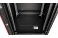 Die Schränke der Basic Flex Line wurden für die effiziente und benutzerfreundliche Installation von aktiven und passiven Netzwerkkomponenten entwickelt, wobei der Schwerpunkt auf einem rationellen Kabelmanagement liegt. Hergestellt aus bis zu 1,5 mm starkem Stahlblech, garantiert jeder Schrank eine hervorragende Stabilität durch eine einzigartige, die einen robusten Stahlrahmen bildet. Sie sind pulverbeschichtet in Grau (RAL 7035) oder Schwarz (RAL 9005)erhältlich. Für schwer zugängliche Aufstellorte ist der Schrank zerlegbar ausgeführt. Die Türen sind leicht abnehmbar und die Türanschläge können zwischen Rechts- und Linksanschlag umgeschaltet werden. Außerdem ist das Dach für den Einbau einer Lüftungseinheit vorbereitet. In jedem Schrank befinden sich zwei Sätze (4 Stück) 483-mm-Profilschienen (19"). Diese verzinkten und mit beidseitig ablesbaren Höheneinheiten versehenen Schienen sind in der Tiefe verstellbar. Um den Einbau von großvolumigen Geräten zu erleichtern, werden sie mit zusätzlichen Tiefenstreben kombiniert. Das Kabelmanagement ist ein zentraler Bestandteil des Designs. Der Schrankboden verfügt über eine ausgestanzte Kabeleinführung, die mit einer Metallplatte abgeschirmt ist. Für die breiteren 800 mm Schränke gibt es zusätzlich ausgestanzte Kabeleinführungen, die beidseitig mit Kunststoff abgedeckt sind. Diese Kabeleinführungen befinden sich auch auf dem Dach, wobei bei den 600 mm breiten Schränken nur eine und bei den 800 mm breiten Schränken drei Kabeleinführungen gibt. Um den unterschiedlichen betrieblichen Anforderungen gerecht zu werden, ist ein umfangreiches Zubehörprogramm mit Kabelführungswerkzeugen und Fachböden erhältlich.