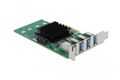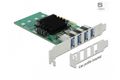 Die PCI Express Karte von Delock erweitert den PC um vier externe USB 3.0 Ports. Jeder Port wird von einem einzelnen Renesas Chipsatz versorgt, wodurch eine hohe Datentransferrate ermöglicht wird. Es können verschiedene USB Geräte, wie z. B. Docking Stationen, Card Reader, externe Gehäuse etc., angeschlossen werden. Aufgrund der vertikalen Anordnung der USB 3.0 Ports, ist ein Einbau in einem Low Profile Slot möglich.