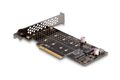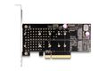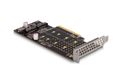 Diese PCI Express Karte von Delock erweitert den PC um zwei M.2 Slots. An diese können M.2 SSDs im 22110, 2280, 2260, 2242 und 2230 Format angeschlossen werden. Die Karte benötigt die PCIe Gabelung (Bifurcation) Funktion des Mainboards, um das PCIe Signal aufzuteilen, wenn mehrere Slots mit M.2 SSDs belegt werden.