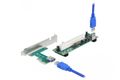 Die PCI Express Riser Karte von Delock ermöglicht den Anschluss von einer PCI Karte über einen PCI Express Anschluss. Das flexible Kabel ermöglicht eine platzsparende Installation im Computer Gehäuse.