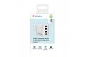 Im 30 W USB-Wandladegerät von Verbatim sind ein USB-C PD 20 W-Anschluss und drei USB-A-Anschlüsse (ein USB-A QC 3.0 18 W-Anschluss und zwei USB-A 10 W-Anschlüsse) in einem schlanken Design kombiniert. Dieses Ladegerät ist ideal zum Laden von Tablets, Smartphone, Spielkonsolen usw. geeignet – im Büro, zu Hause oder unterwegs.