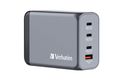 Verbatim GNC-240. Aufladetyp: Drinnen, Energiequelle: AC, Aufladekompatibilität: Universal. Eingangsspannung: 100 - 240 V, Maximale Ausgangsspannung: 28 V. USB Typ-C Anzahl Anschlüsse: 3, Schnellladung, Energieschutzeigenschaften: Überstrom, Überspannung, Überhitzung, Kurzschluß. Produktfarbe: Schwarz, Grau