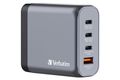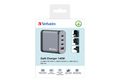 Verbatim GNC-140. Aufladetyp: Drinnen, Energiequelle: AC, Aufladekompatibilität: Universal. Eingangsspannung: 100 - 240 V, Maximale Ausgangsspannung: 20 V. USB Typ-C Anzahl Anschlüsse: 3, Schnellladung, Energieschutzeigenschaften: Überstrom, Überspannung, Überhitzung, Kurzschluß. Produktfarbe: Schwarz, Grau