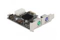 Die PCI Express Karte von Delock erweitert den PC um zwei PS/2 Anschlüsse und einen internen USB 2.0 Pfostenstecker. An die PS/2 Buchsen können verschiedene Geräte wie z. B. eine Tastatur und eine Maus angeschlossen werden. Der interne USB Anschluss kann mit Hilfe eines optionalen Kabels zur Anbindung von USB Geräten verwendet werden.