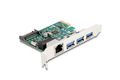 Die PCI Express Karte von Delock erweitert den PC um drei USB 5 Gbps Ports sowie einen Gigabit LAN Port. An die Karte können verschiedene USB Geräte, wie z. B. Docking Stationen, Card Reader, externe Gehäuse etc., angeschlossen werden. Die Karte bietet zusätzlich einen Netzwerkanschluss mit einer Übertragungsrate von bis zu 1000 Mbps.