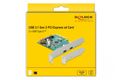 Die PCI Express Karte von Delock erweitert den PC um zwei externe USB 3.1 Ports. An die Karte können verschiedene USB Geräte, wie z. B. Docking Stationen, Card Reader, externe Gehäuse etc., angeschlossen werden. Die Karte ermöglicht eine Datentransferrate von 10 Gbps an beiden Ports, wenn diese gleichzeitig benutzt werden.