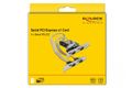 Die PCI Express Karte von Delock erweitert den PC um vier externe serielle RS-232 Ports. Es können verschiedene Geräte, wie z. B. Scanner, Protokoll-Konverter, IoT Geräte etc., an die Karte angeschlossen werden.