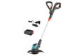 Einfaches Rasentrimmen ohne Kabel: Der Akku-Trimmer EasyCut 23/18V P4A macht es Dir einfach Deinen Rasen in Form zu bringen. Und das sogar bei schwer zugänglichen Stellen! Der EasyCut 23/18V P4A ist sehr leicht, was die Arbeit mit dem Gerät besonders komfortabel macht. Denn dadurch kannst Du den Akku-Trimmer lange am Stück benutzen, ohne dass Deine Hände müde werden. Mit dem im Set enthaltenen Akku, schafft der Trimmer eine Laufzeit von bis zu 45 Minuten, ein Ladegerät ist im Set ebenfalls enthalten. Nach einem kurzen Aufbau, ist der EasyCut 23/18V P4A einsatzbereit. Bevor es losgeht, passt Du den Akku-Trimmer ganz einfach an Deine Anforderungen an. Sowohl der vordere Handgriff als auch der Teleskopstiehl lassen sich verstellen, sodass Du beim Trimmen stets eine aufrechte und entspannte Körperhaltung einnehmen kannst. Während des Arbeitens ist der Ladestatus des Akkus immer sichtbar, dank der LED-Anzeige im Handgriff. Möchtest Du unter Hindernissen schneiden? Dann lässt sich einfach der Winkel des Trimmerkopfs anpassen. Das Schneidsystem arbeitet mit langlebigen RotorCut-Kunststoffmessern, die dafür sorgen, dass Du besonders präzise und effizient trimmen kannst. An Deine Pflanzen, die in einem Beet am Rande der Grasfläche stehen, wurde ebenso gedacht. Denn der ausklappbare und abnehmbare Pflanzen-Schutzbügel sorgt dafür, dass Deine Blumen und Sträucher gut geschützt sind. Der GARDENA Akku-Trimmer EasyCut 23/18V P4A wird als Ready-To-Use Set mit Ladegerät und einem 18V-POWER-FOR-ALL-Akku geliefert. Die POWER FOR ALL ALLIANCE ist eine der größten markenübergreifenden Akku-Allianzen führender Hersteller. Deren Akkus sind mit zahlreichen weiteren Geräten rund ums Haus und den Garten kompatibel – was bedeutet, dass Du nicht mehr für jedes Produkt einen Akku kaufen musst. So sparst Du Geld und bist flexibel! Power für Deine Ideen!