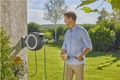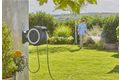 Die Aufbewahrungsbox ermöglicht eine große Reichweite und platzsparende Lage an der Wand. Die Box ist an der Wandhalterung in einem Winkel von 180° schwenkbar, sodass jeder Bereich des Gartens problemlos erreicht werden kann und der Schlauch dabei nicht abknickt. Dank der Halterung an der Wand bietet sie einen praktischen Stauraum, an dem auch Spritzen, Brausen und weitere Bewässerungsaufsätze stets griffbereit verstaut werden können.