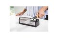 Der Messerschärfer arbeitet mit 4.700 pro Minute und ist dabei sehr leise, so dass Sie niemanden bei der Arbeit stören werden. Das ergonomische Design sorgt für einen bequemen und sicheren Griff, die rutschfesten Füße halten den Schärfer in Position.