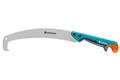 Die GARDENA combisystem-Gartensäge gebogen mit einer Sägeblattlänge von 315 mm ist flexibel einsetzbar – je nachdem, wo Sie sägen: Wenn Sie gut erreichbare Äste schneiden wollen, verwenden Sie die Gartensäge „ganz normal“ als Handsäge. Dank ergonomischem Handgriff mit angenehmen Soft-Kunststoff-Komponenten liegt die Säge dabei gut in der Hand. Und wenn Sie Äste in bis zu 5 Metern Höhe schneiden, verlängern Sie die Gartensäge einfach mit einem teleskopierbaren combisystem-Stiel. Praktisch: einfach den combisystem-Stiel fixieren. Der Sicherheitsverschluss garantiert eine sichere Verbindung. Für einen sicheren Schnitt sorgt die Präzisionszahnung mit impulsgehärteten Zahnspitzen mit 2-Seiten-Schliff. Durch eine Spezial-Beschichtung ist die cs-Gartensäge 300 PP gebogen optimal gegen Rost geschützt. Bei dieser Zug-Druck-Säge sind Sie auch bei ziehenden Bewegungen dank des Stoppers am Griffende abrutschsicher. Mit dem Räumhaken an der Spitze des gebogenen Sägeblatts beseitigen Sie bequem Geäst. Die Säge kann an einer Öse aufgehängt und das Sägeblatt mit einem Schneidenschutz geschützt werden. So ist die cs-Gartensäge stets sicher aufbewahrt. Die Garantiezeit beträgt 25 Jahre.