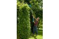 Ganz entspannt kann man mit der Elektro-Teleskop-Heckenschere an den Schnitt hoher Hecken herangehen. Denn dank des einstellbaren Teleskopstiels lässt sich die Hecke perfekt in Form bringen und man bleibt dabei stets sicher mit beiden Füßen auf dem Boden. Um das Messer in die richtige Schneidposition zu bringen, lässt sich der Heckenscherenkopf ganz einfach abwinkeln. So kann auch das Heckendach komfortabel und exakt geschnitten werden, ohne dass man eine Leiter besteigen muss. Umgekehrt braucht man aber auch nicht in die Knie gehen, denn Bodendecker lassen sich damit ebenfalls bequem schneiden.
