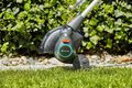 Beim Radsatz für Trimmer von GARDENA handelt es um ein nützliches Zubehör, das bei den beiden Elektro-Modellen ComfortCut und PowerCut, sowie der Akkuversion ComfortCut Li Verwendung findet. Neben vielen anderen tollen Funktionen besitzen alle drei Geräte die geniale Kantenschneidfunktion. Sie ermöglicht das senkrechte Schneiden von Kanten, sodass damit vor allem Ränder von Wegen oder einer Terrasse getrimmt werden können. Hier kommt der Radsatz für Trimmer zum Einsatz. Um ihn zu verwenden, wird zunächst der Pflanzen-Schutzbügel entfernt, dann kann er am Gerät angebracht werden. Einmal montiert, bist Du nun in der Lage, Deinen Trimmer mit Hilfe des Zusatzrades über den Boden zu führen. Du musst also den Trimmer nicht mehr auf einer Höhe halten, sondern kannst gezielt eine überhängende Rasenkante schneiden. Besonders beim längeren Bearbeiten von Rändern führt das Zusatzrad zu einer spürbaren Entlastung in Deinen Armen und Händen.