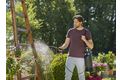 Mit dem Drucksprüher 5 l Comfort von GARDENA bist Du bei der Pflanzenpflege im Garten für verschiedene Aufgaben bestens gewappnet. Setze ihn ein, um gezielt Deine Blumen, Sträucher oder auch Bäume zu behandeln – sei es nun für die Sprühbewässerung, zum Düngen oder für den Pflanzenschutz, chemisch oder biologisch. Bevor Du beginnst, baust Du im 5 Liter fassenden Behälter Druck auf, indem Du den handlichen D-Griff auf und ab bewegst. Da die Sprühflasche auch über ergonomische Trittflächen verfügt, hast Du bei der Ausführung dieser Bewegung immer einen festen Stand. Zum Herstellen von einem eigenen, biologischen Sud liegen dem Gerät Rezepte und der dazugehörige Nylonfilter bei. Mit seiner Hilfe ist es möglich, zum Beispiel einen Brennnesselsud gegen Schädlingsbefall wie Blattläuse abzusieben. Der Vorgang des Einfüllens wird zudem durch die 12 cm große Trichteröffnung erheblich vereinfacht. Ist alles für den Sprühvorgang bereit, nutzt Du den ergonomisch platzierten Schultergurt, wodurch das Tragen des Sprühgerätes angenehm ist. Um zu erfahren, wie viel Flüssigkeit noch im Tank ist, reicht ein Blick auf den Sichtstreifen. Die Sprühlanze liegt sehr gut in der Hand und verfügt über eine Feststellfunktion, sodass der Drucksprüher 5 l Comfort auch in diesem Punkt seinem Namen gerecht wird. Mit dem Stechstrahl und dem Sprühstrahl hast Du die Wahl aus zwei verschiedenen Sprühbildern, um damit Deine Pflanzen flexibel zu besprühen.